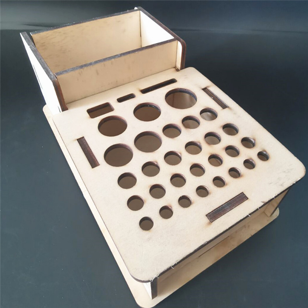Подставка-органайзер с отверстиями разных диаметров для различных кожевенных инструментов и нитей