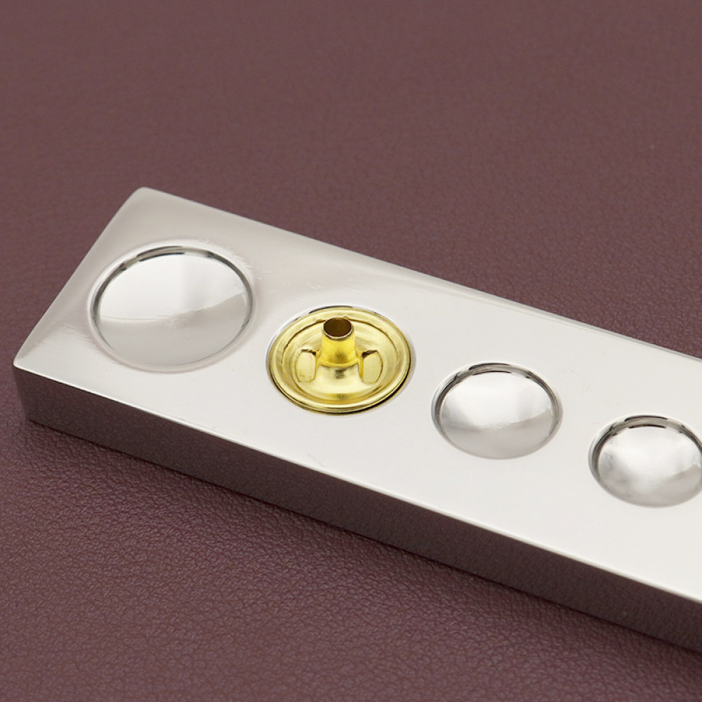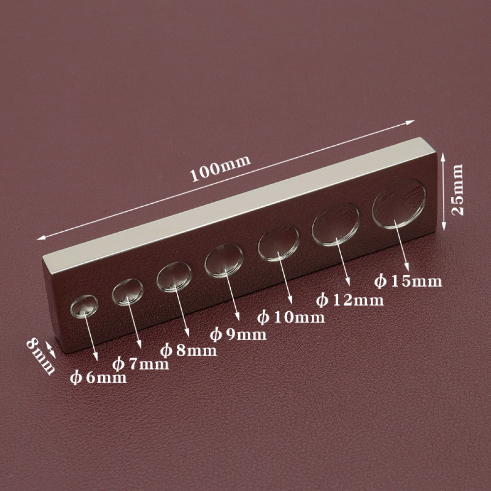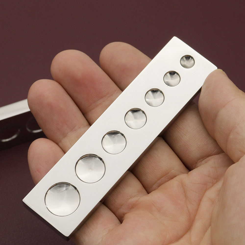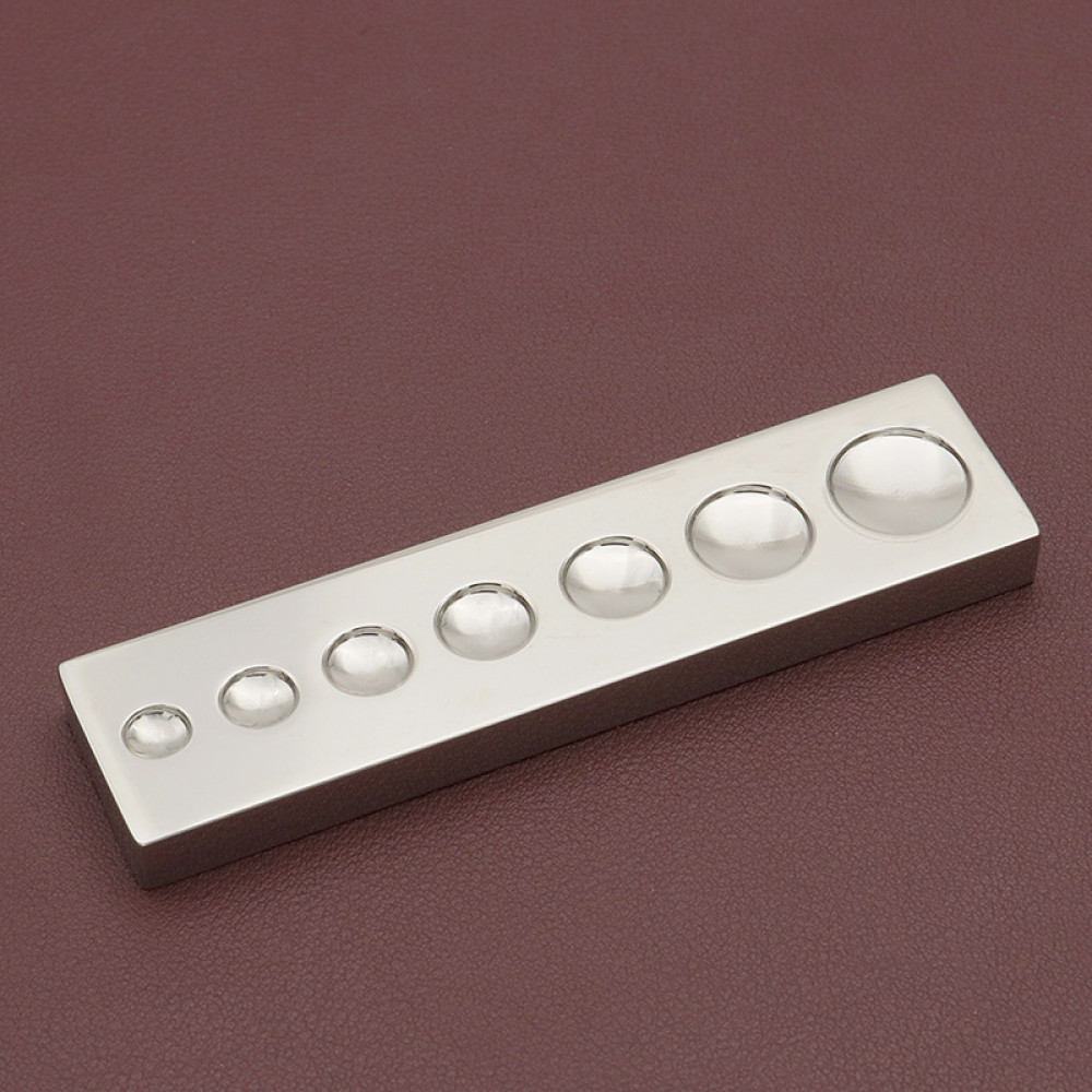 Полированное основание (плашка) из нержавеющей стали на 7 лунок: походит для установки кнопок, хольнитенов диаметром - 6,7,8, 9, 10. 12, 15 мм.