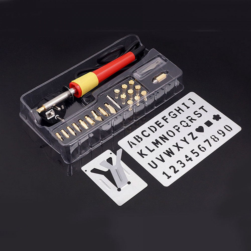 Паяльник с набором насадок разной формы для нанесения надписей, символов, украшений путем выжигания тонких линий, орнаментов по дереву, коже, пробке и др.