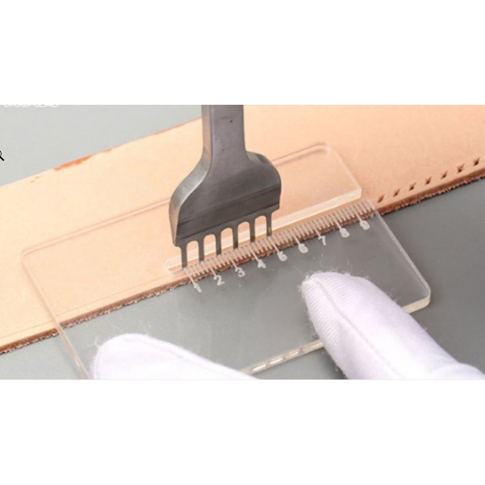 Ограничительная планка для строчных пробойников - вспомогательный инструмент, позволяющий держать пробойник строго вертикально (перпендикулярно поверхности кожи) во время удара. Особенно такая планка будет полезна новичкам, у которых инструмент зачастую ломается из-за неправильной установки.