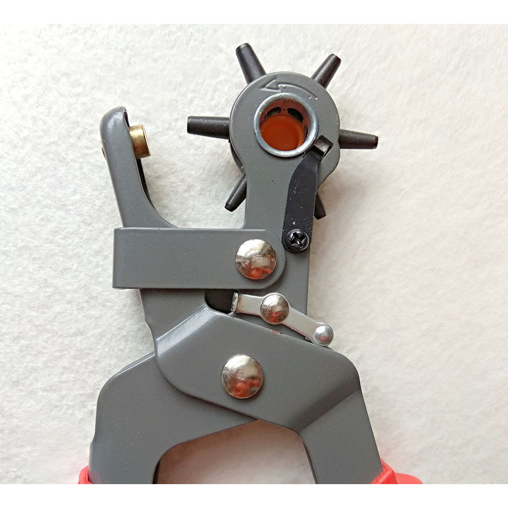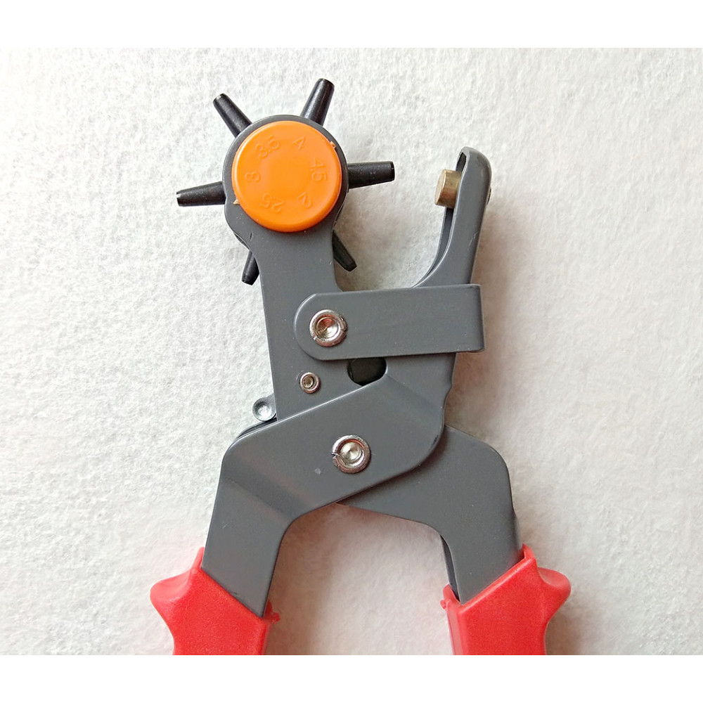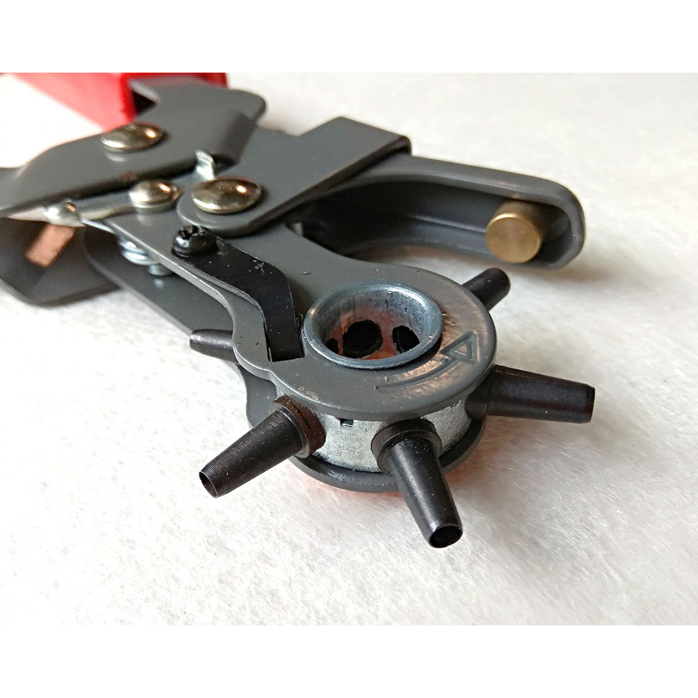 Профессиональный револьверный пробойник с удобным вращающимся колесом на 6 насадок разных диаметров для изготовления отверстий: 2.5, 3, 3.5, 4, 4.5, 5 мм.