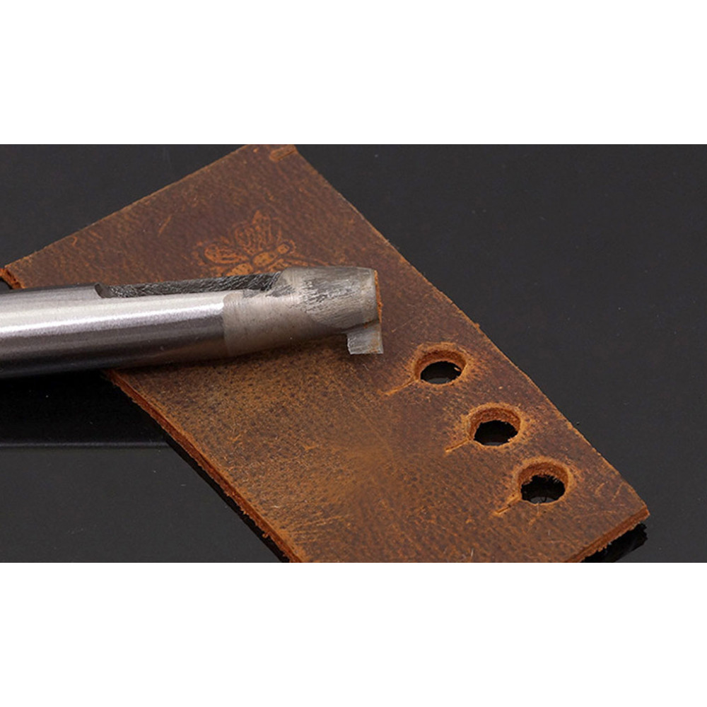 В специальных пробойниках для кобурных кнопок точно рассчитано соотношение диаметра отверстия и длины ножки, это поможет избежать ошибок при ручном прорезании отверстий и значительно ускорят процесс работы. Чтобы правильно подобрать пробойник под размер кобурного винта нужно учитывать, что диаметр отверстия должен быть меньше головки (шарика) винта в 1.5-2 раза, т.к. винт входит в отверстие не только благодаря круглому отверстию, но и за счет вертикальной насечки. Чем тоньше и мягче кожа, тем больше должна быть разница между диаметром отверстия (пробойника) и диаметром головки кобурной кнопки.
