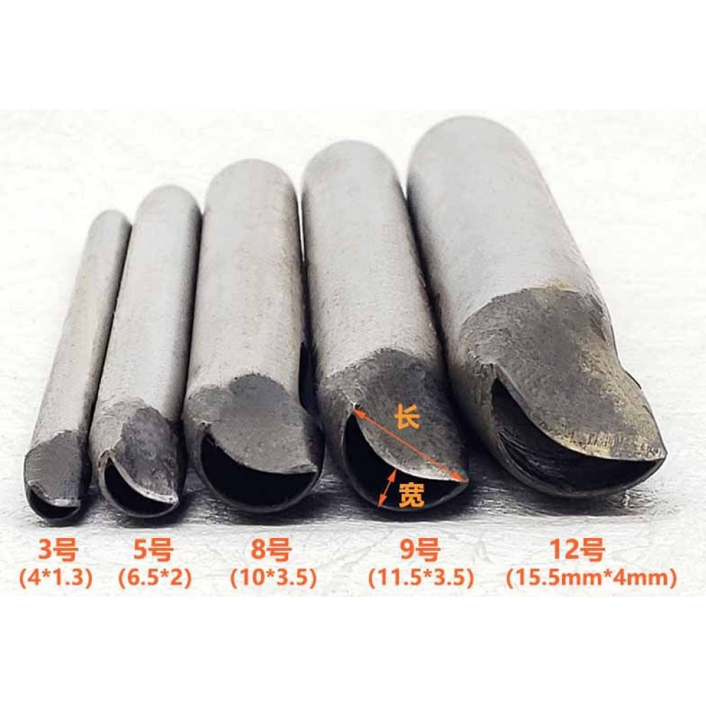 Пробойники фигурные разных размеров, пробивают отверстие в форме полумесяца.