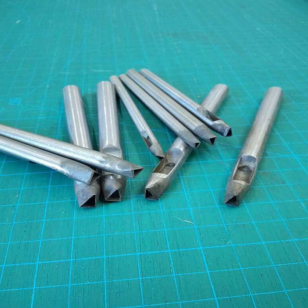 Пробойники фигурные разных размеров, для вырубки в форме равнобедренного треугольника.