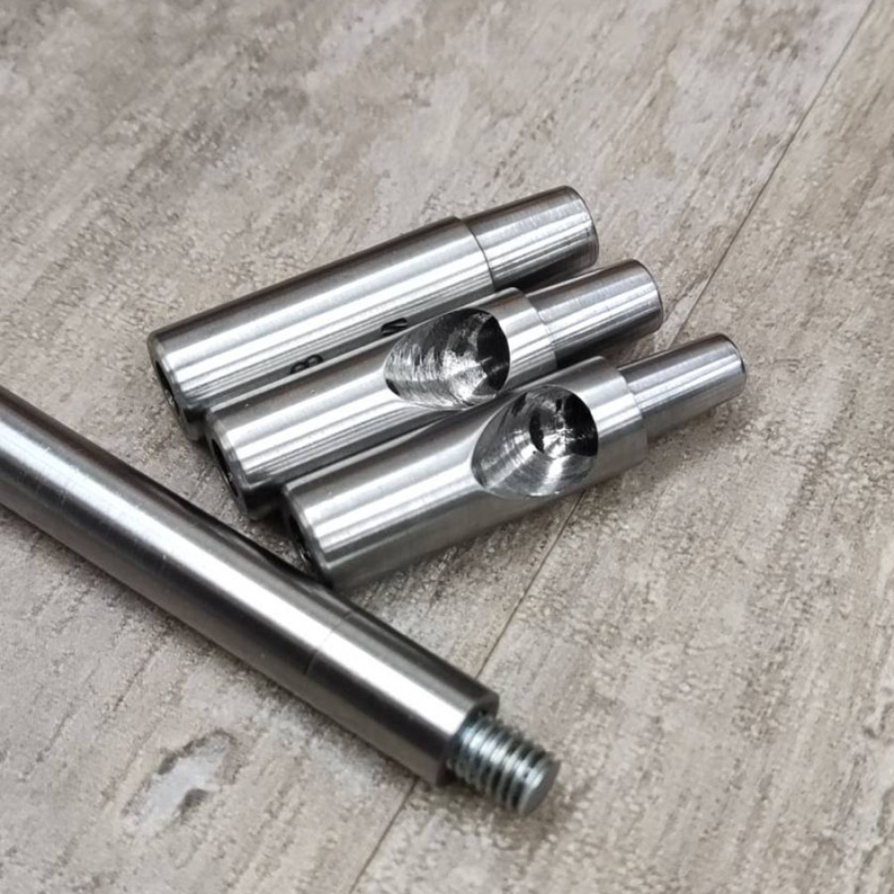 Три сменные насадки с рукояткой. Размер пробойника промаркирован на инструменте.