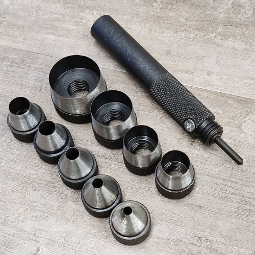 Пробойники ручные круглого сечения для кожи и других плотных материаловНабор - ручка и 9 насадок раз..