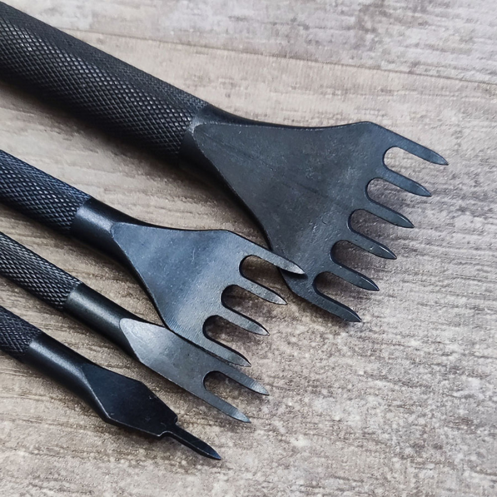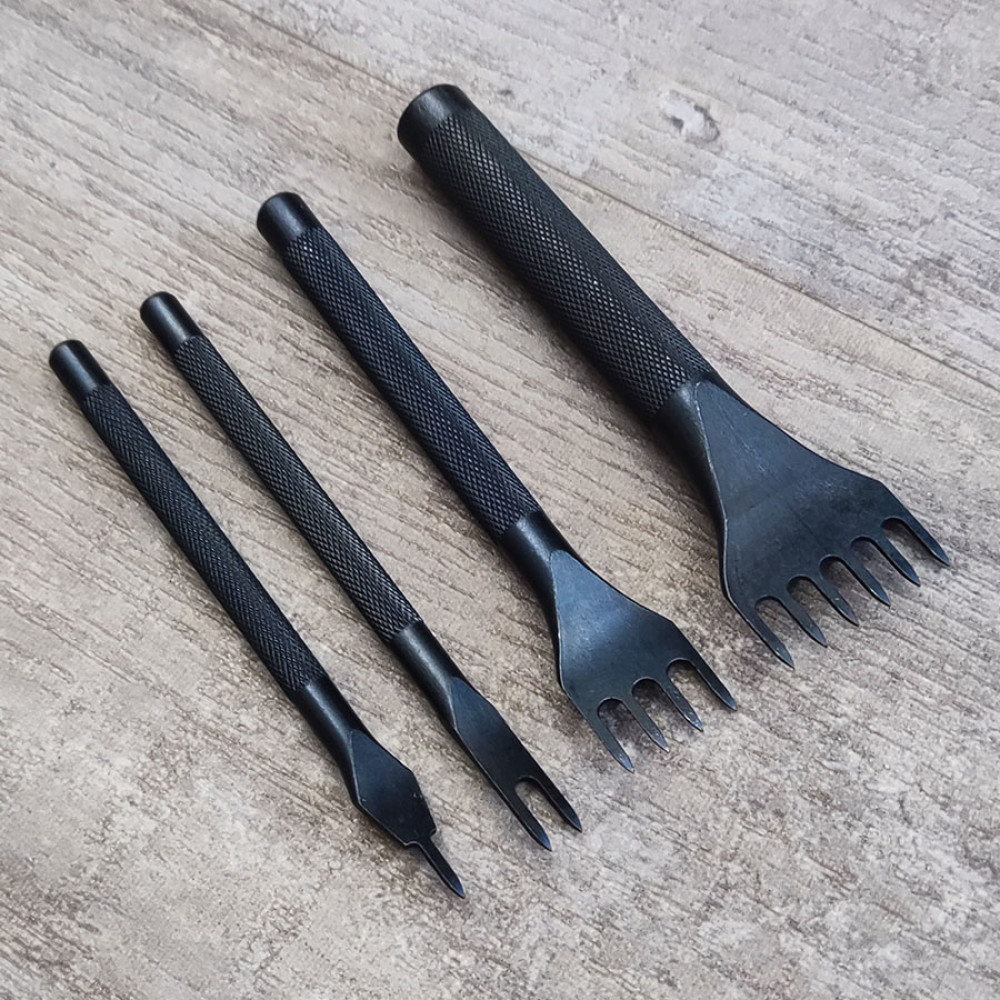 Строчные шаговые пробойники предназначены для пробивания аккуратных и равно удаленных друг от друга отверстий под шов в коже.