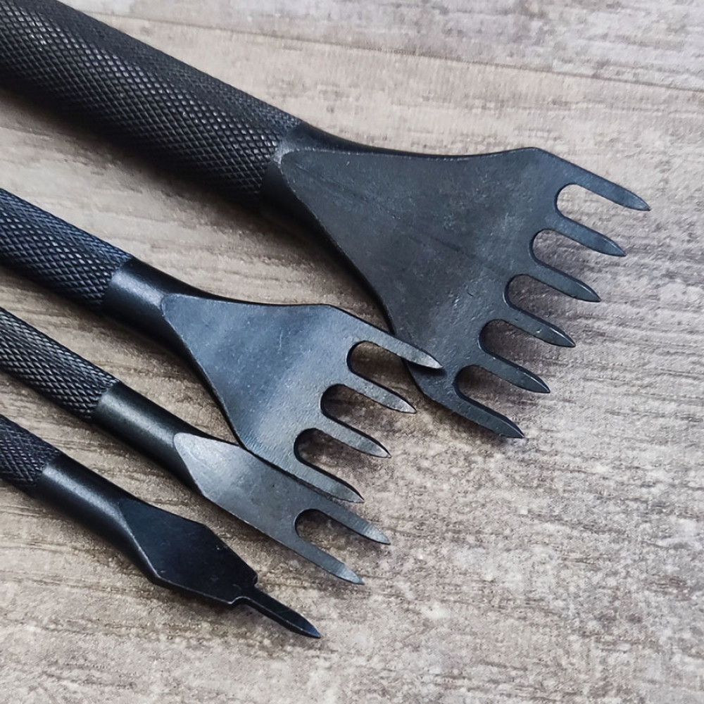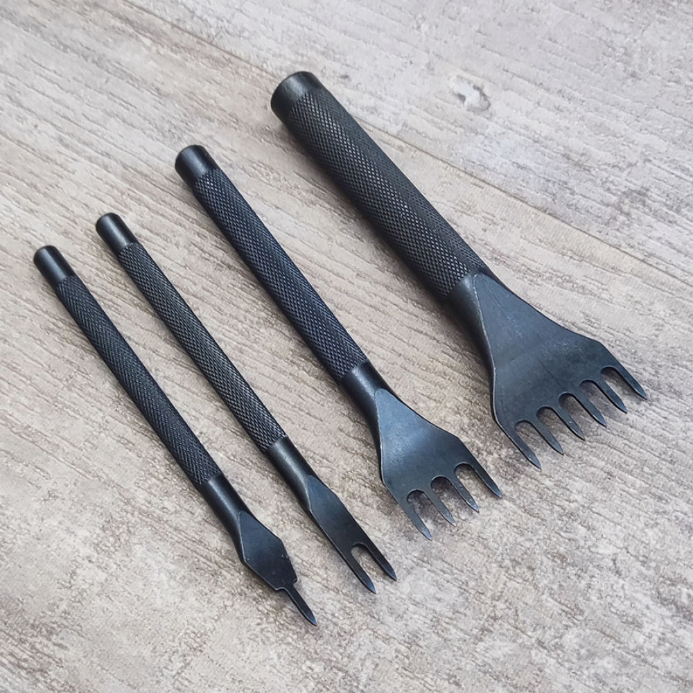 Строчные шаговые пробойники предназначены для пробивания аккуратных и равно удаленных друг от друга отверстий под шов в коже.