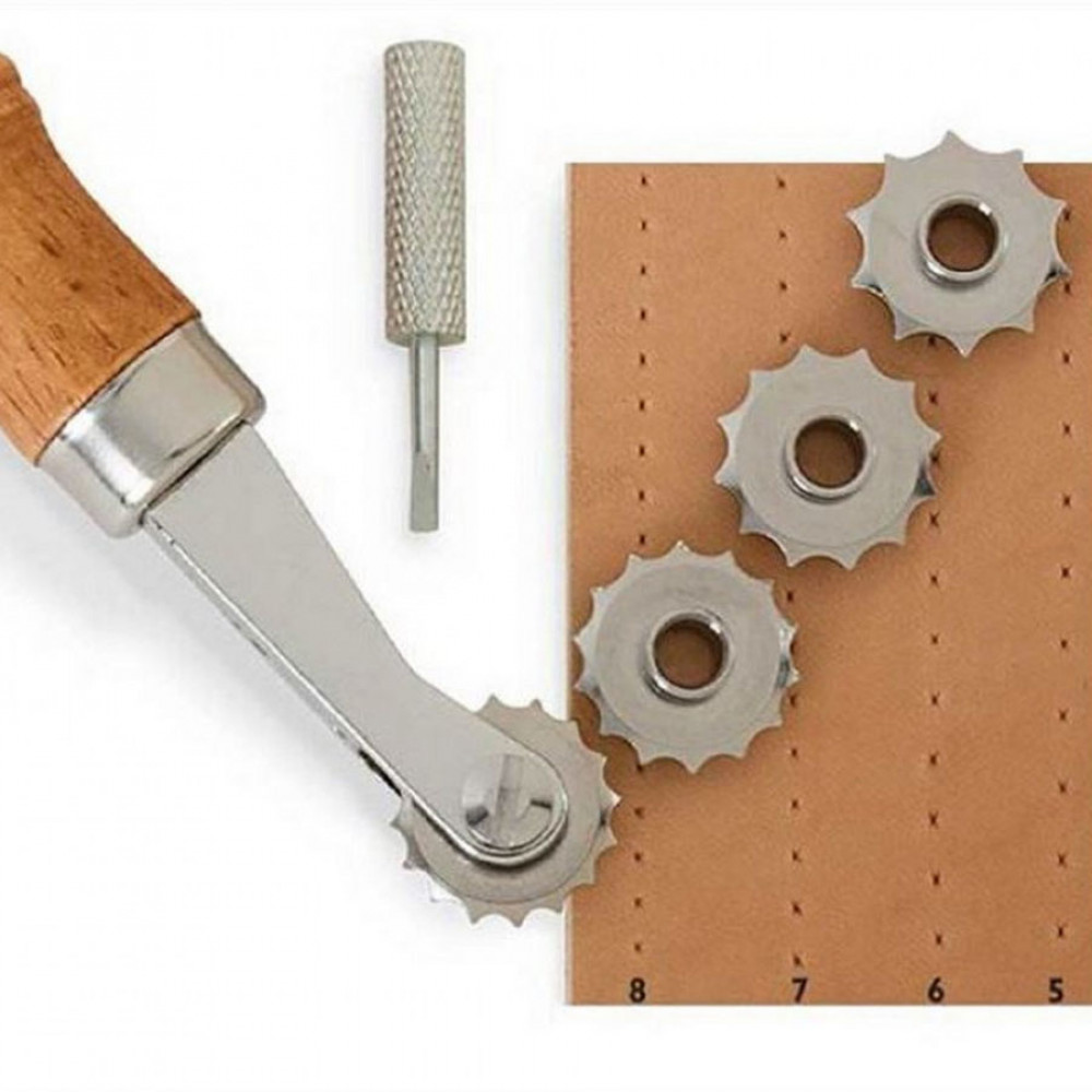 Ручной разметочный инструмент со съемными колесиками шаг 3, 3,5, 4, 5 мм. Удобный инструмент для разметки шва на коже и других плотных материалах. Благодаря сменным колесикам с разным размером шага можно ровно и аккуратно разметить раскройные линии и разметить отверстия под шов с разными интервалами.