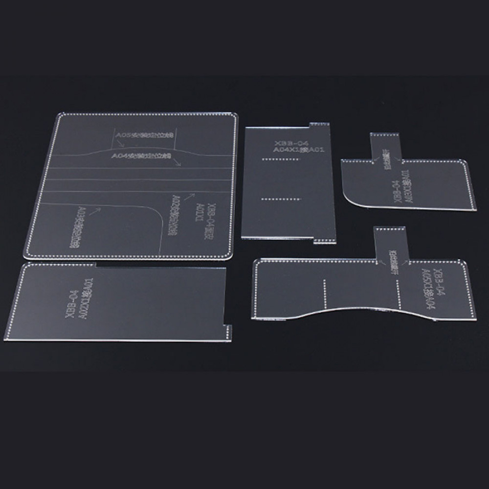 В комплект входят шаблоны всех деталей для изготовления кошелька. Заводские пластиковые шаблоны-выкройки удобны в работе, прослужат долго, позволят идеально ровно обвести лекало. Большое преимущество наших шаблонов - это наличие отверстий для разметки в кожаных деталях.