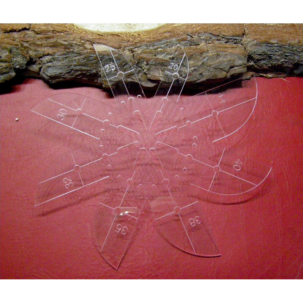 Толщина акрила составляет 3мм, что создаёт возможность работать роликовым ножом, а также обеспечивает прочность лекалу.
