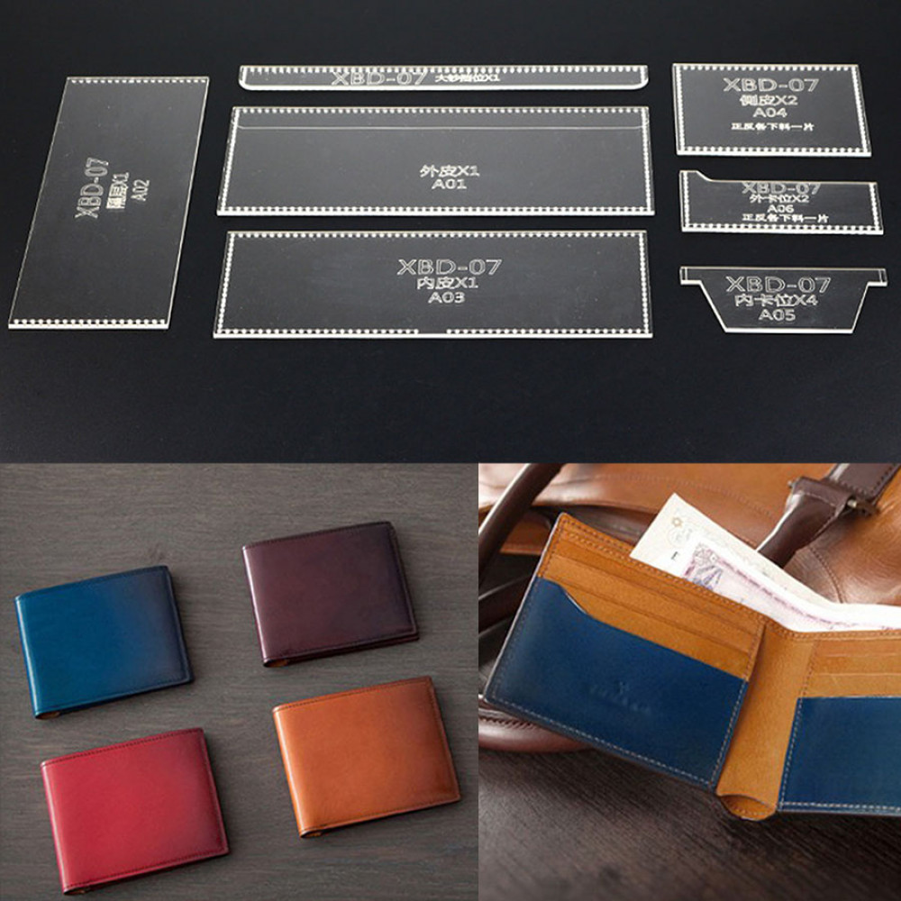 В комплект входят шаблоны всех деталей для изготовления портмоне. Большое преимущество наших шаблонов - это наличие отверстий для разметки в кожаных деталях (для пробивания отверстий подойдут пробойники с шагом 4 мм)