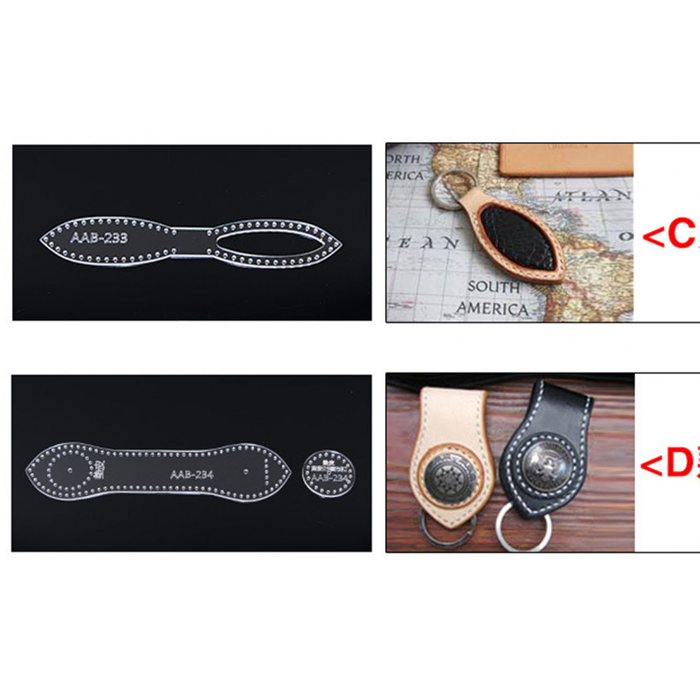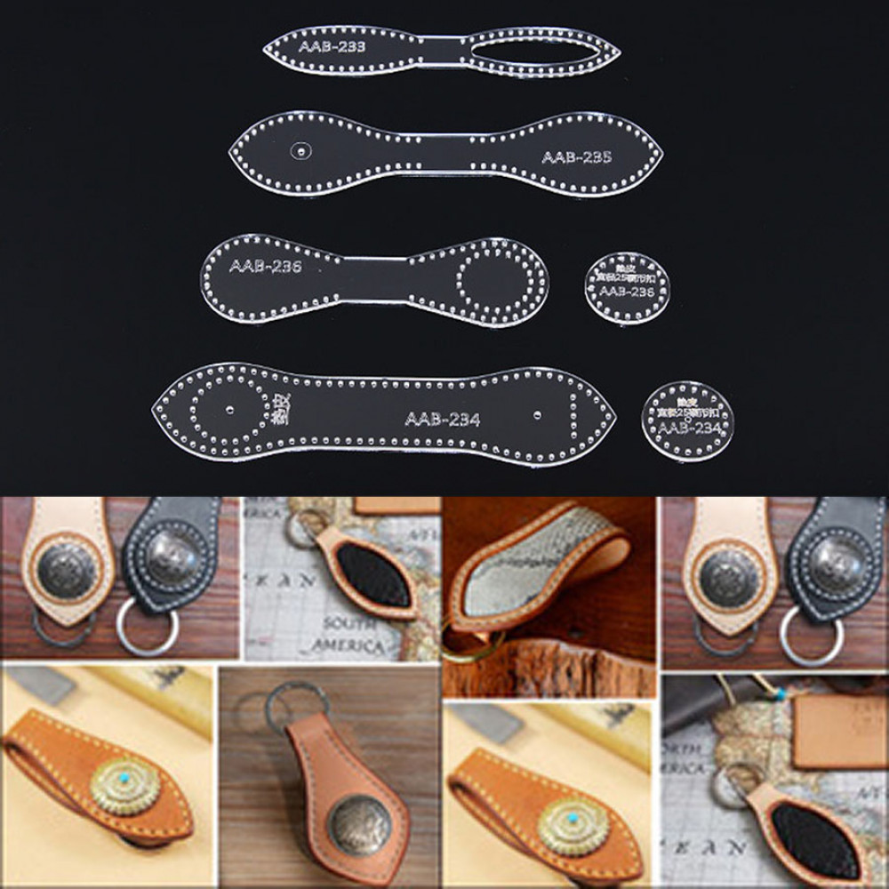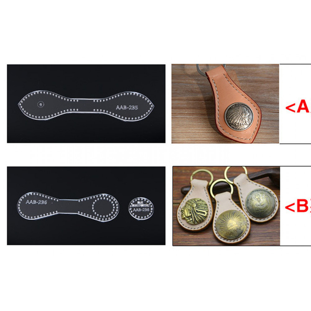 Пластиковые шаблоны для брелоков разных форм, с разметкой под шов. (толщина пластика 3 мм). Дополнительную фурнитуру для изготовления кожаных аксессуаров Вы также можете купить в интернет-магазине Пава