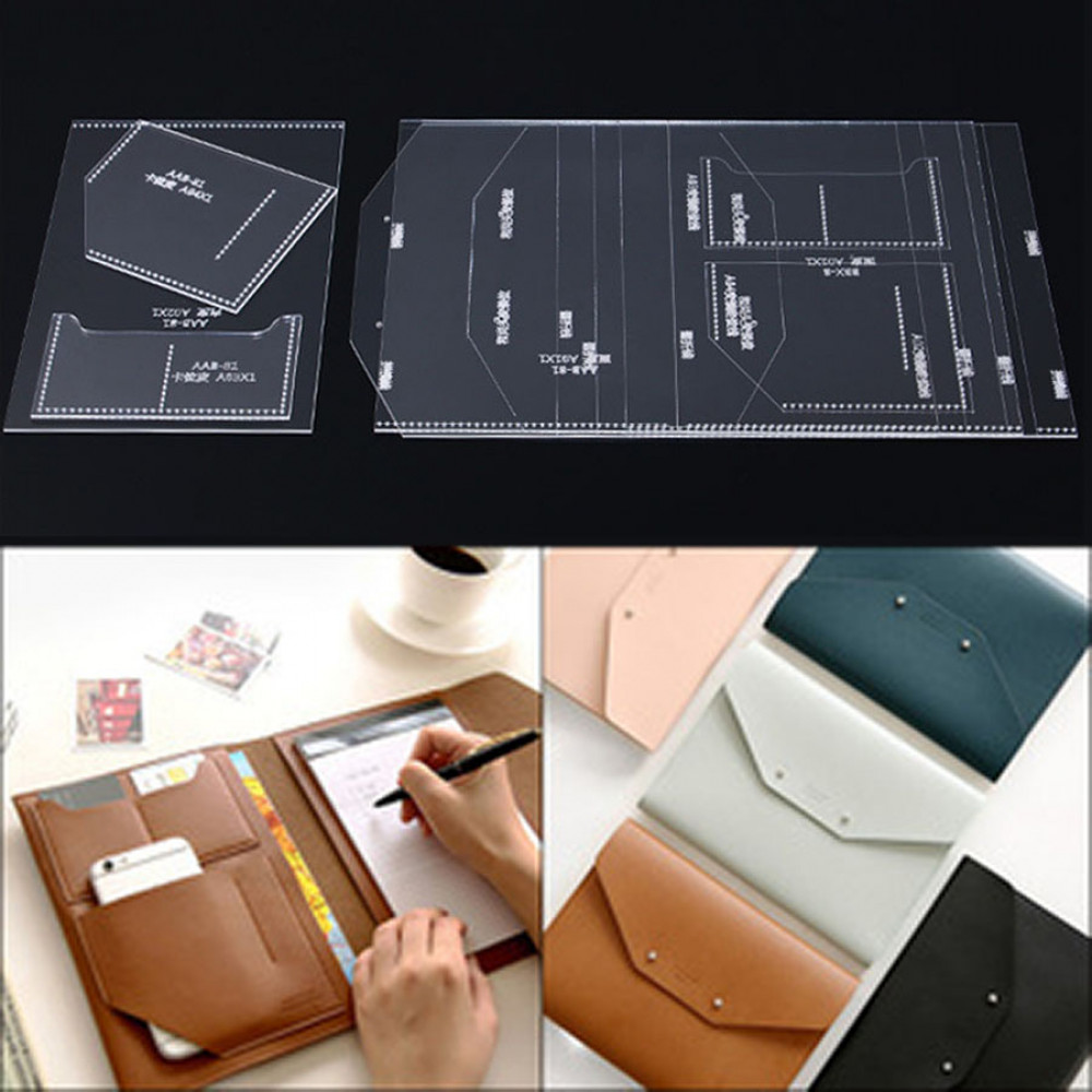Пластиковые шаблоны (выкройки) для изготовления кожаной сумочки (папки, органайзера ) в форме конверта.