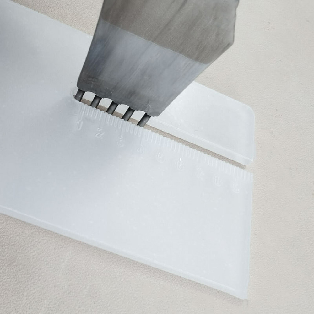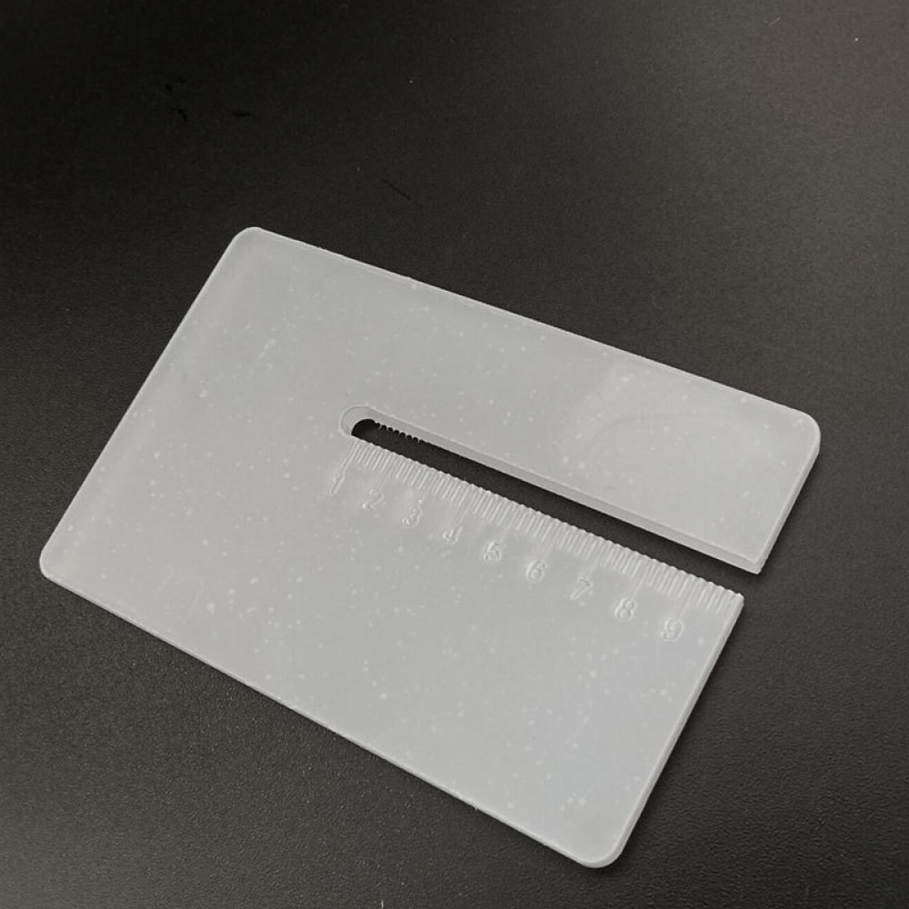 Также планка позволяет вынуть пробойник из кожи, не деформируя ее. Получаем при этом аккуратные отверстия без деформации кожи. Для удобства нанесена шкала в см.