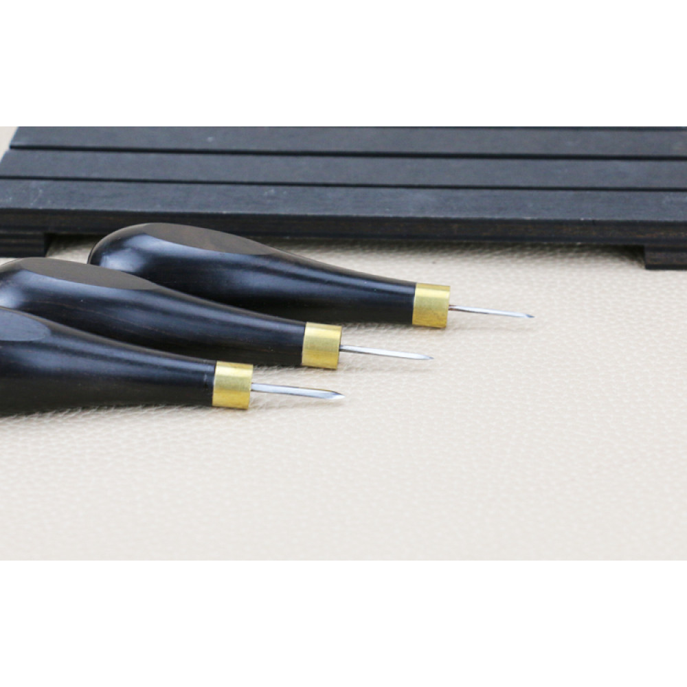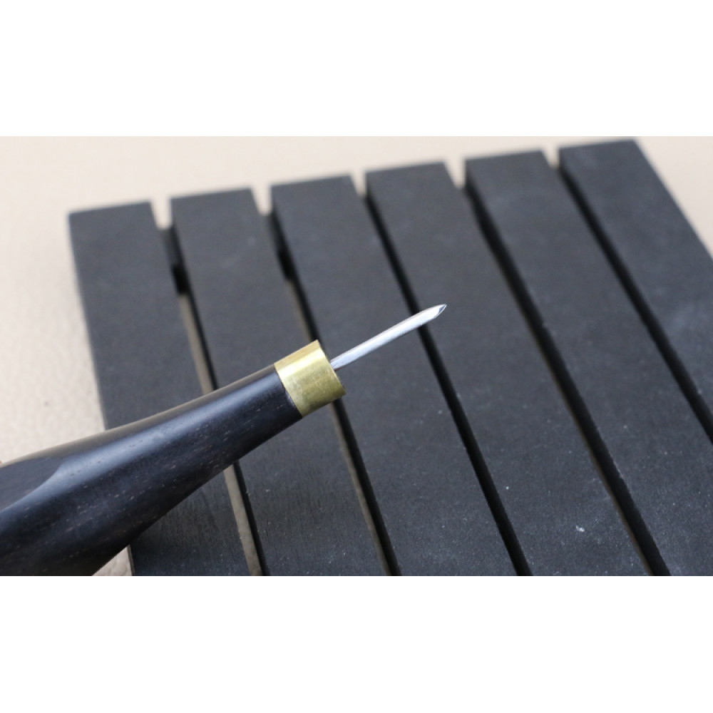 Шило острое, из высококачественной стали. Ромбовидное, швейное шило с полированной ручкой из ценных пород дерева. Используется для прокалывания отверстий при шитье классическим седельным швом или докалывании при использовании пробойников.