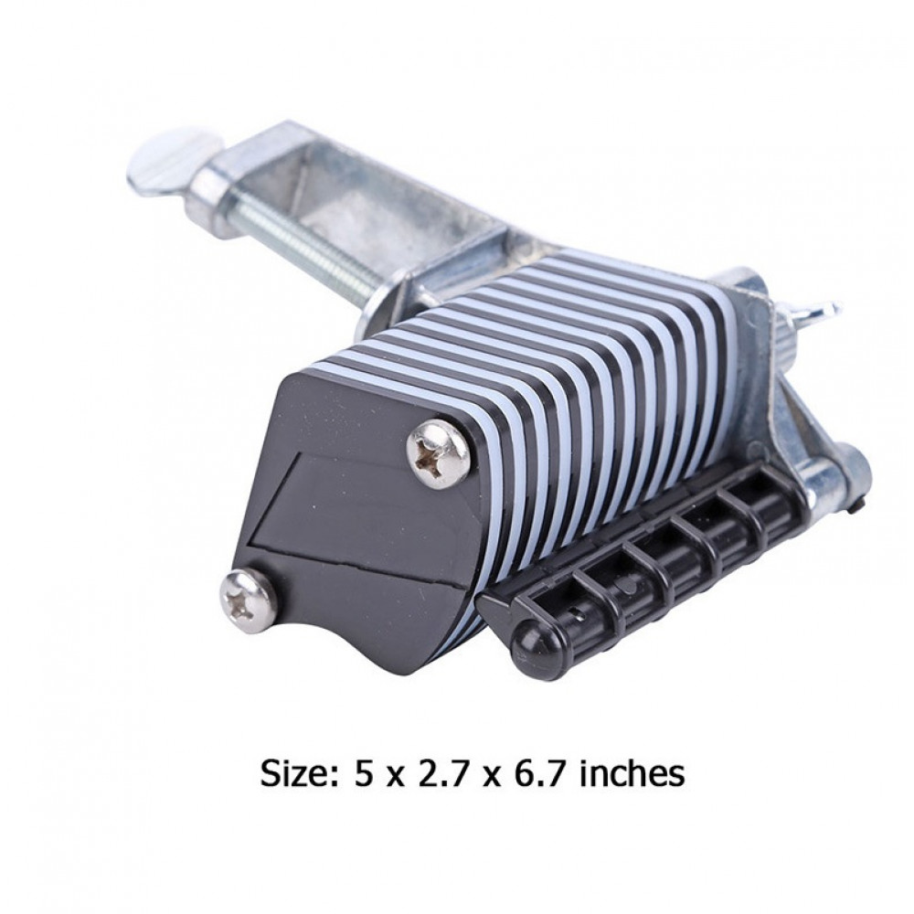 Компактный настольный резак для изготовления узких полос, шнуров, бахрамы из кожи и др. плотных материалов. Устройство закрепляется на поверхности стола (см фото).