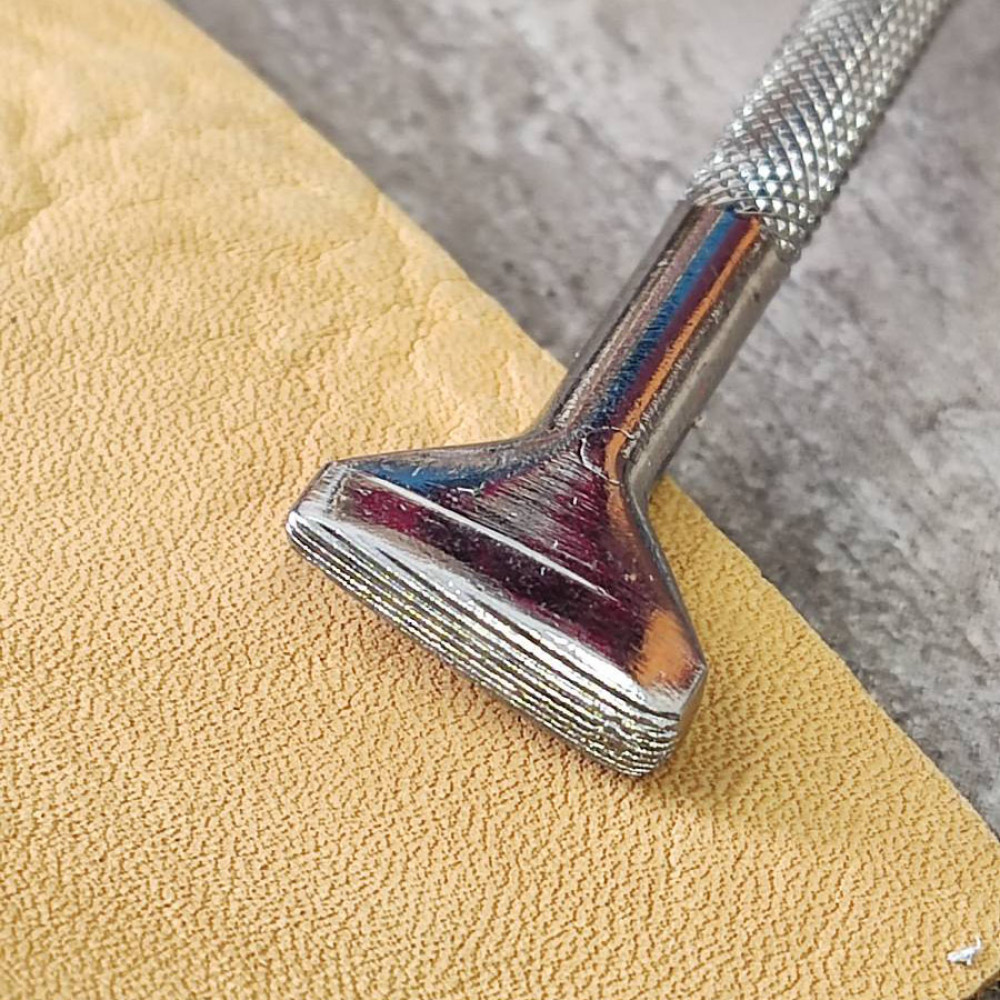 Чтобы штампы прослужили долго, рекомендуется работать с ними на прорезиненном коврике и специальным молотком. Штамп ставится строго перпендикулярно поверхности кожи и фиксируется. Затем по нему наносится удар молотком. Глубина и четкость получаемого оттиска зависят от силы удара по штампу, от степени мягкости кожи. Жесткие и плотные виды кожи могут потребовать несколько ударов