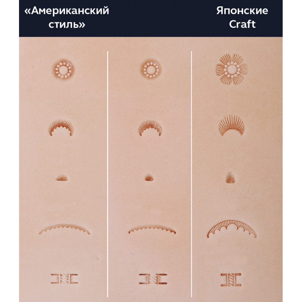 Качественные штампы из импортной стали для тиснения по коже разных размеров и форм: геометрические, растительные и др. орнаменты.