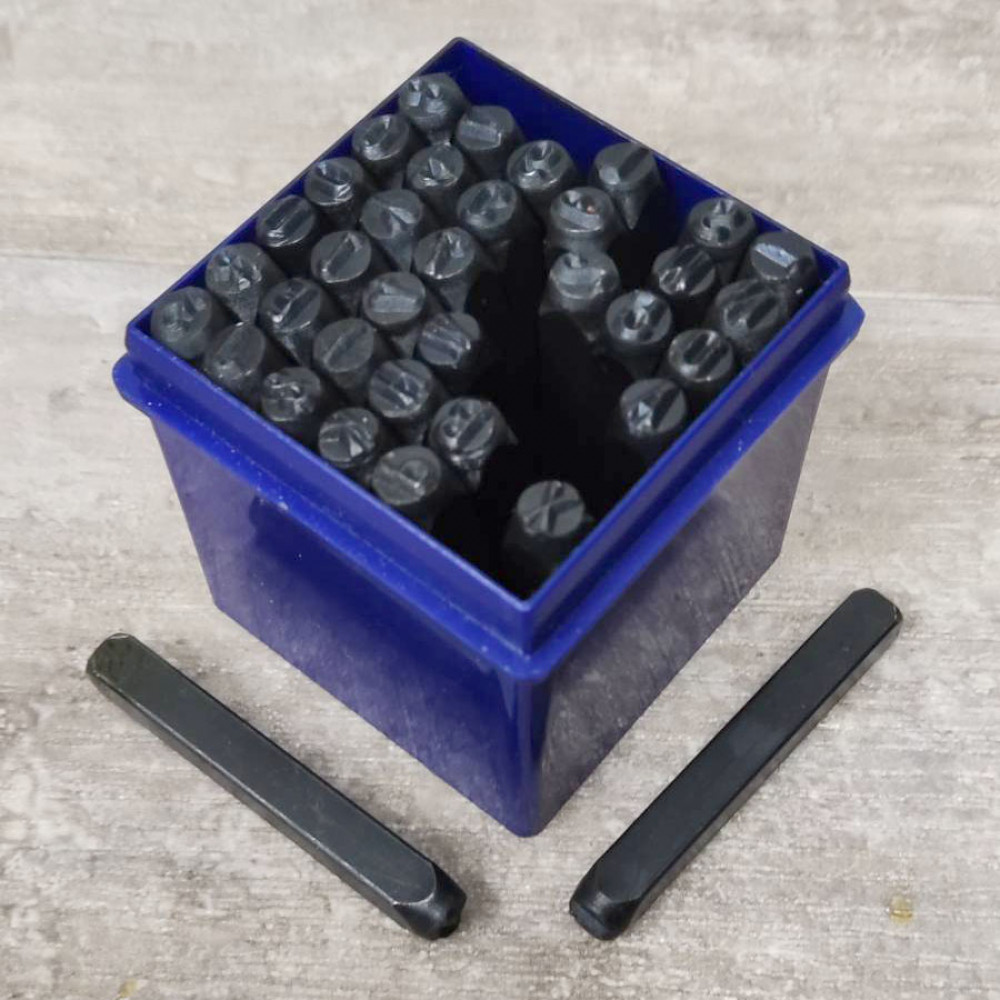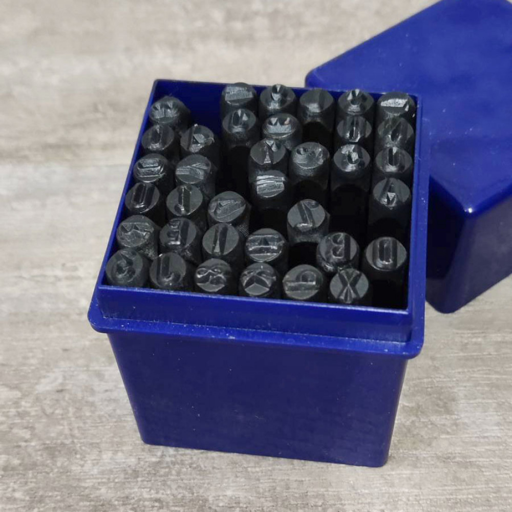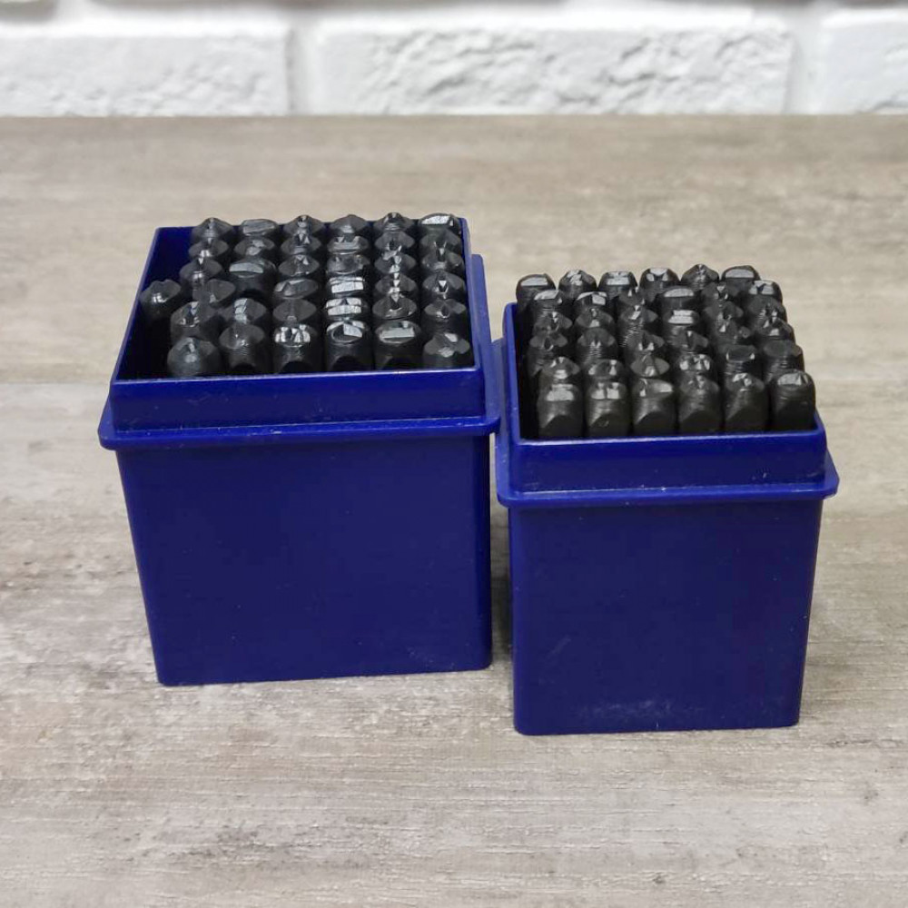 В наборе 27 штампов (буквы латинского алфавита и знак &) и 9 цифр для нанесения логотипов и надписей на коже.