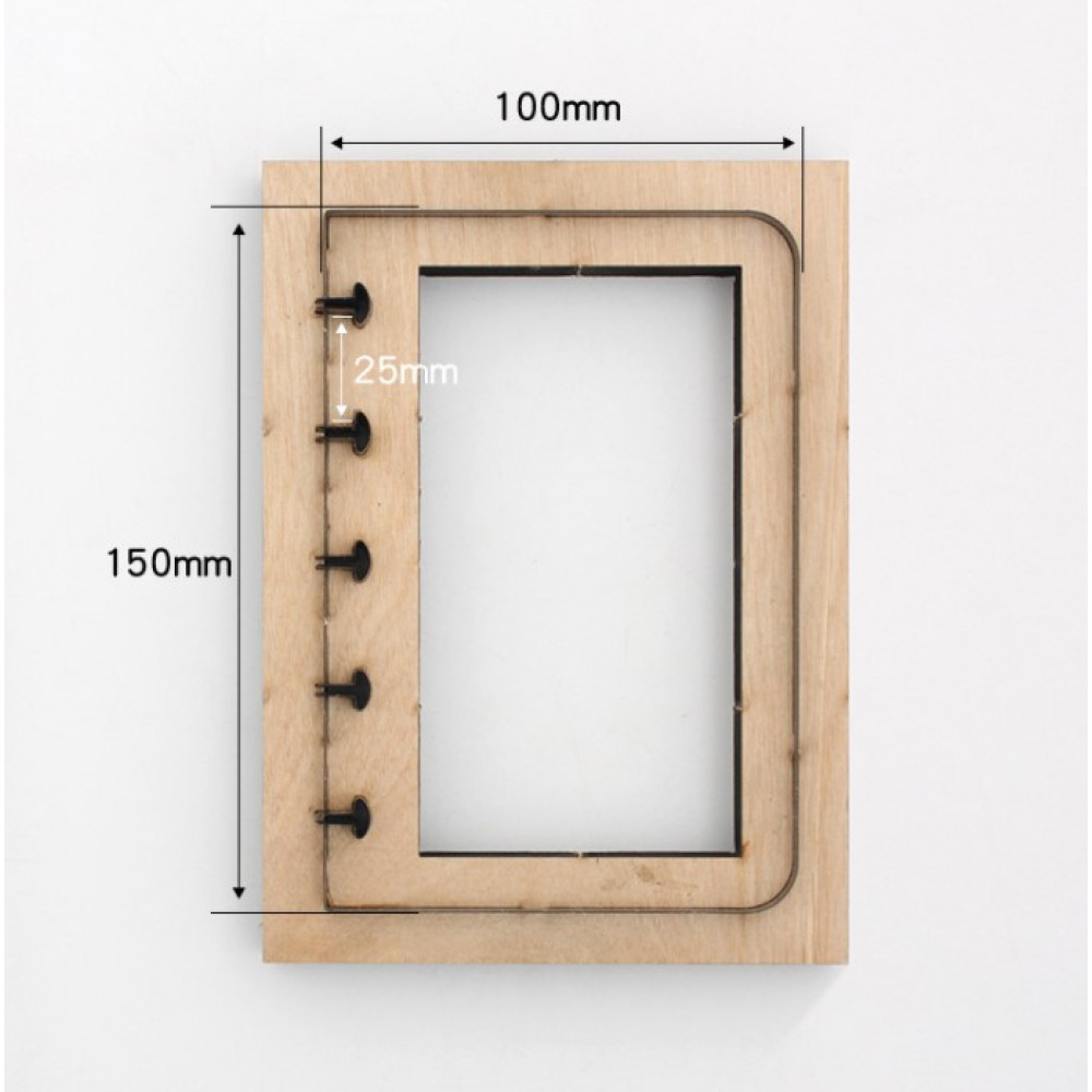 Вырубные штампы-штанцформы на деревянной основе. Позволяют получить готовую идеально ровную деталь. Данная штанц-форма позволяет быстро вырубить из кожи или других плотных материалов детали обложки для ежедневника с креплением бумаги на диски типа АТОМА