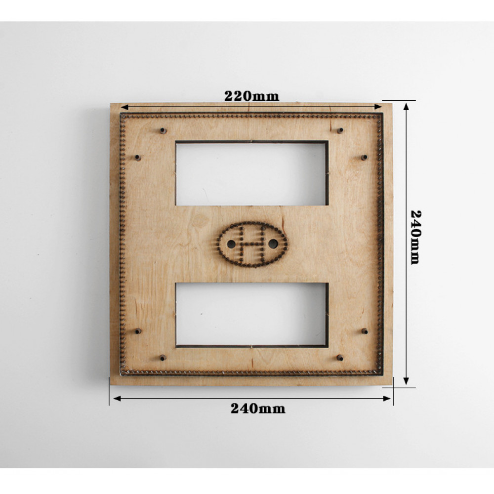 Вырубные штампы-штанцформы на деревянной основе. Позволяют получить готовую идеально ровную деталь. Данная штанцформа позволяет быстро вырубить из кожи или других плотных материалов основу коробки для мелочей. При помощи штанцформы можно выбить контур изделия, перфорацию-логотип в центре, а также необходимые отверстия под шов (шаг стежка - 4 мм).