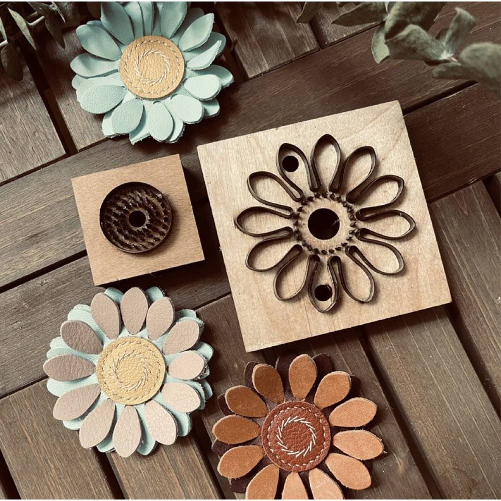 Штанцформа вырубная для кожи - деталь для изготовления аппликации в виде ромашки.