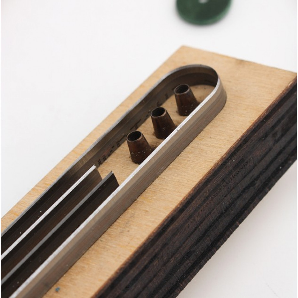 Для вырубки применяется специальный пресс либо Вы можете использовать ПЛАШКУ ДЛЯ ШТАНЦФОРМ и молоток-киянку.