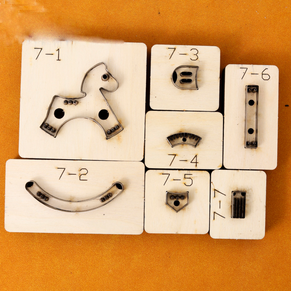 Вырубные штампы-штанцформы на деревянной основе. Позволяют получить готовую идеально ровную деталь и значительно сэкономить время на изготовление галантерейного изделия из кожи или других плотных материалов. Отличительная особенность штампа - наличие вставок для высечки отверстий под шов и пробойника круглого диаметра под отверстие!