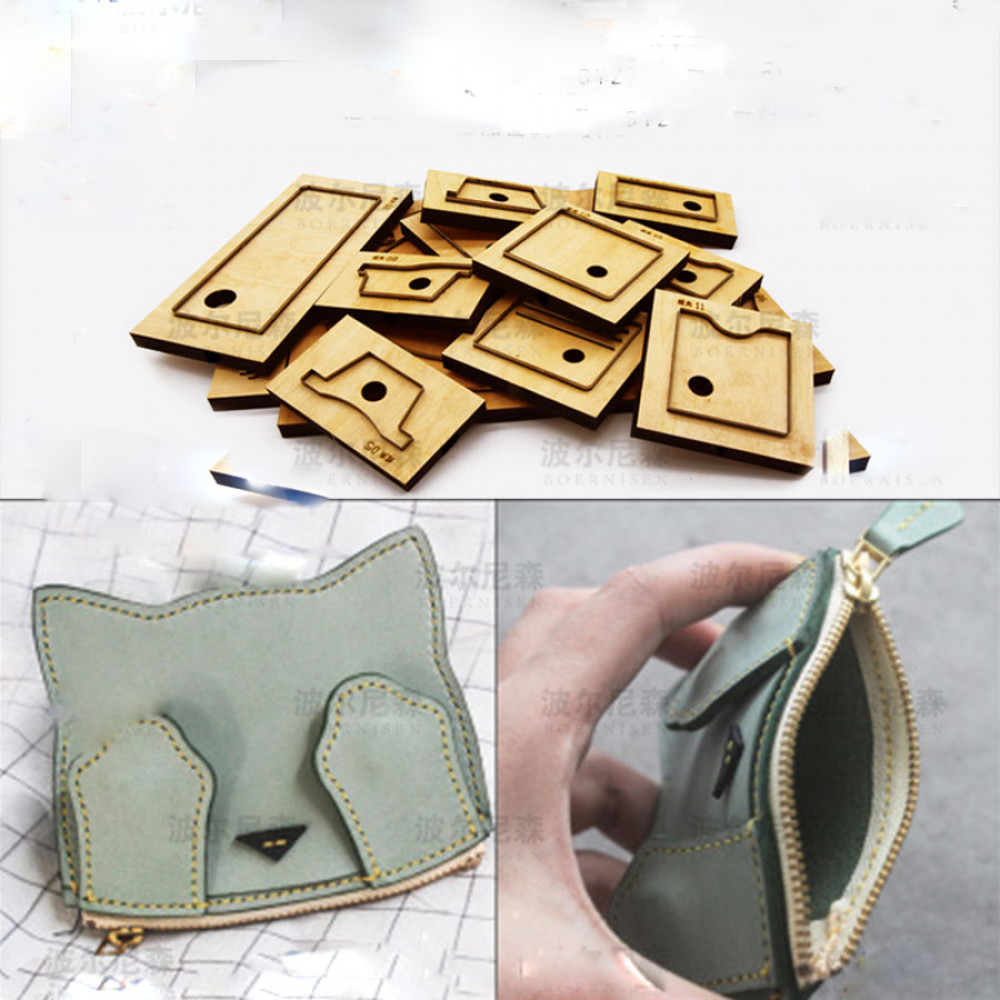 Вырубные штампы-штанцформы для кожи для изготовления кошелька. Штанцформа позволяет получить готовую идеально ровную деталь и значительно сэкономить время на изготовление галантерейного изделия из кожи или других плотных материалов. Отличительная особенность штампа - наличие вставок для высечки отверстий под шов и пробойника круглого диаметра под отверстие! На выходе получается не только ровная, но и готовая для сшивания деталь.