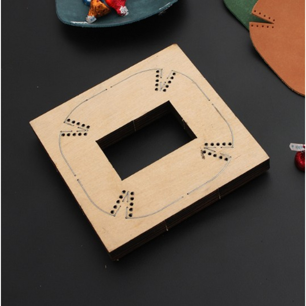 Вырубные штампы-штанцформы на деревянной основе. Позволяют получить готовую идеально ровную деталь. Данная штанц-форма позволяет быстро вырубить деталь для небольшой подставки из кожи с уже готовыми отверстиями под шов. Остается - только сшить четыре небольших шва и изделие готово!