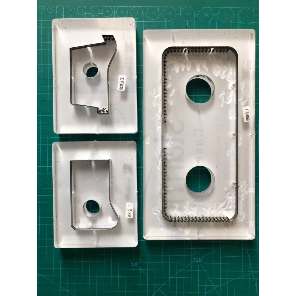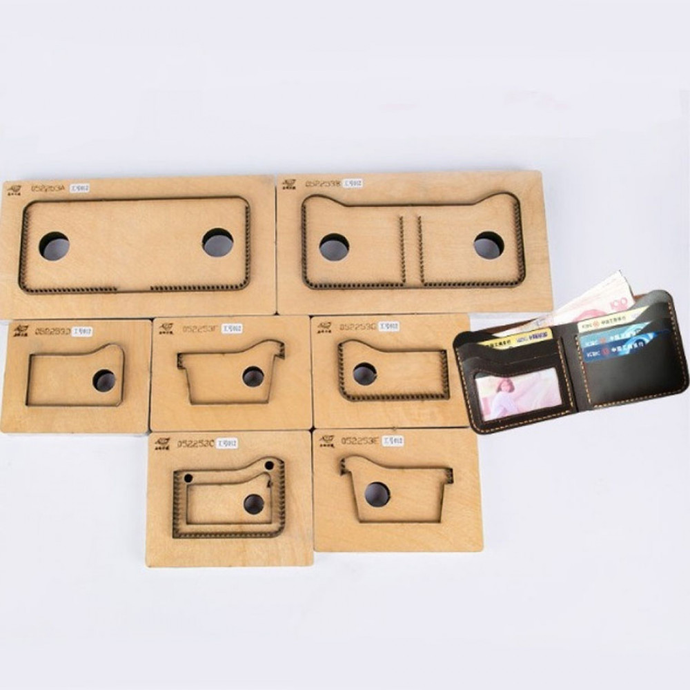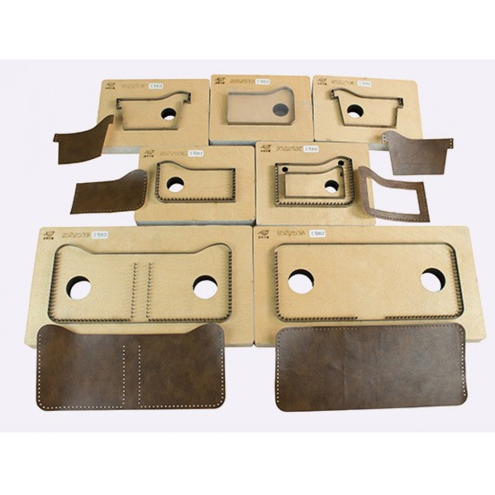 Вырубные штампы-штанцформы на пластиковой основе для изготовления портмоне из кожи. Позволяют получить готовую идеально ровную деталь и значительно сэкономить время на изготовление галантерейного изделия из кожи или других плотных материалов.