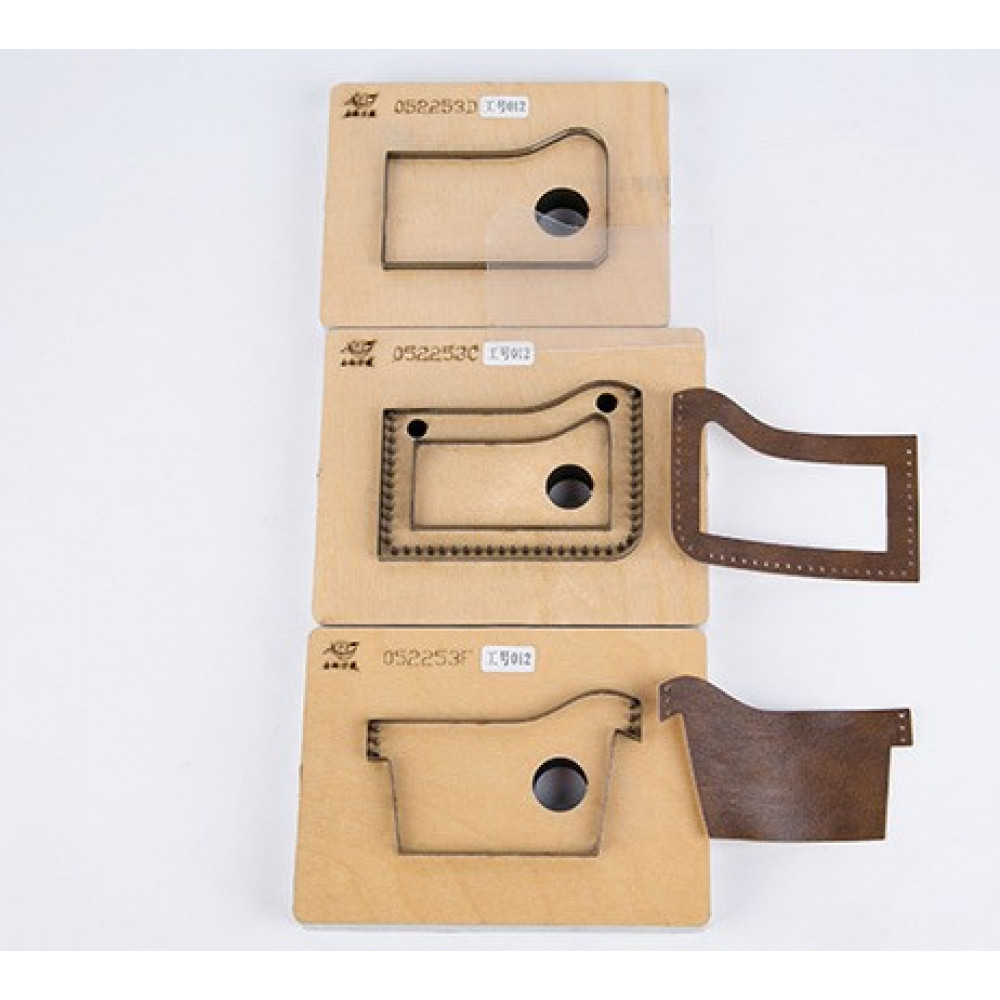 Штанц-форма с вырубкой по контурам и пробойниками под шов на акриле (вес около 4 кг) - цена указана за комплект. На фото в демонстрационных целях представлены варианты формы на фанере с пробойниками, а также пример готовых деталей вырубки из кожи