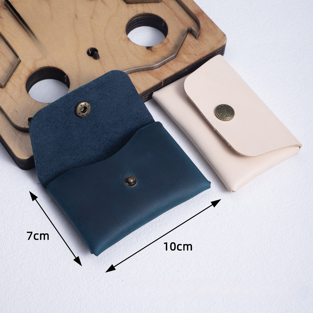 Вырубные штампы-штанцформы на деревянной основе для изготовление монетницы (кошелька). Позволяют получить готовую идеально ровную деталь и значительно сэкономить время на изготовление галантерейного изделия из кожи или других плотных материалов. Отличительная особенность штампа - наличие вставок для высечки отверстий круглого диаметра! Монетница собирается без швов, при помощи кнопок или хольнитенов.