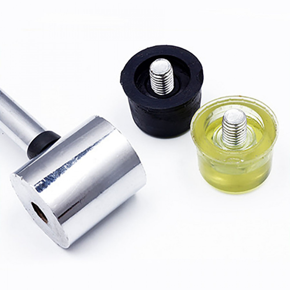 Две сменные головки на бойке молотка для тиснения: из полиуретана и искусственной кожи.