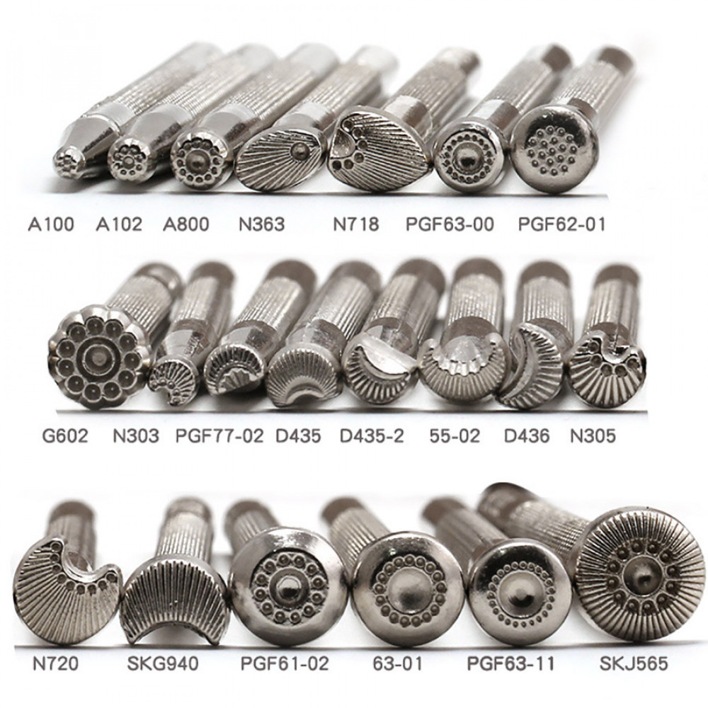 Металлические штампы для тиснения по коже разных размеров и форм: геометрические, растительные и др. орнаменты.