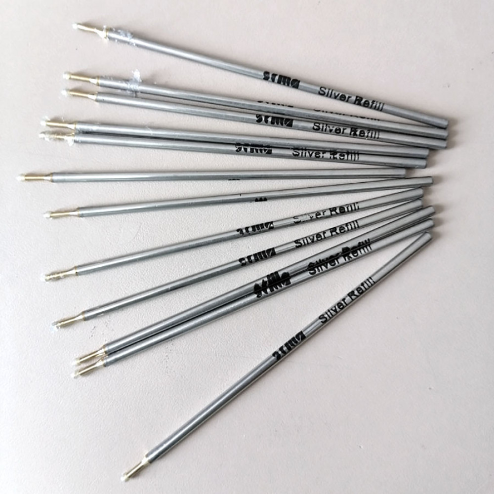 Стержни со специальным составом чернил серебристого цвета.
