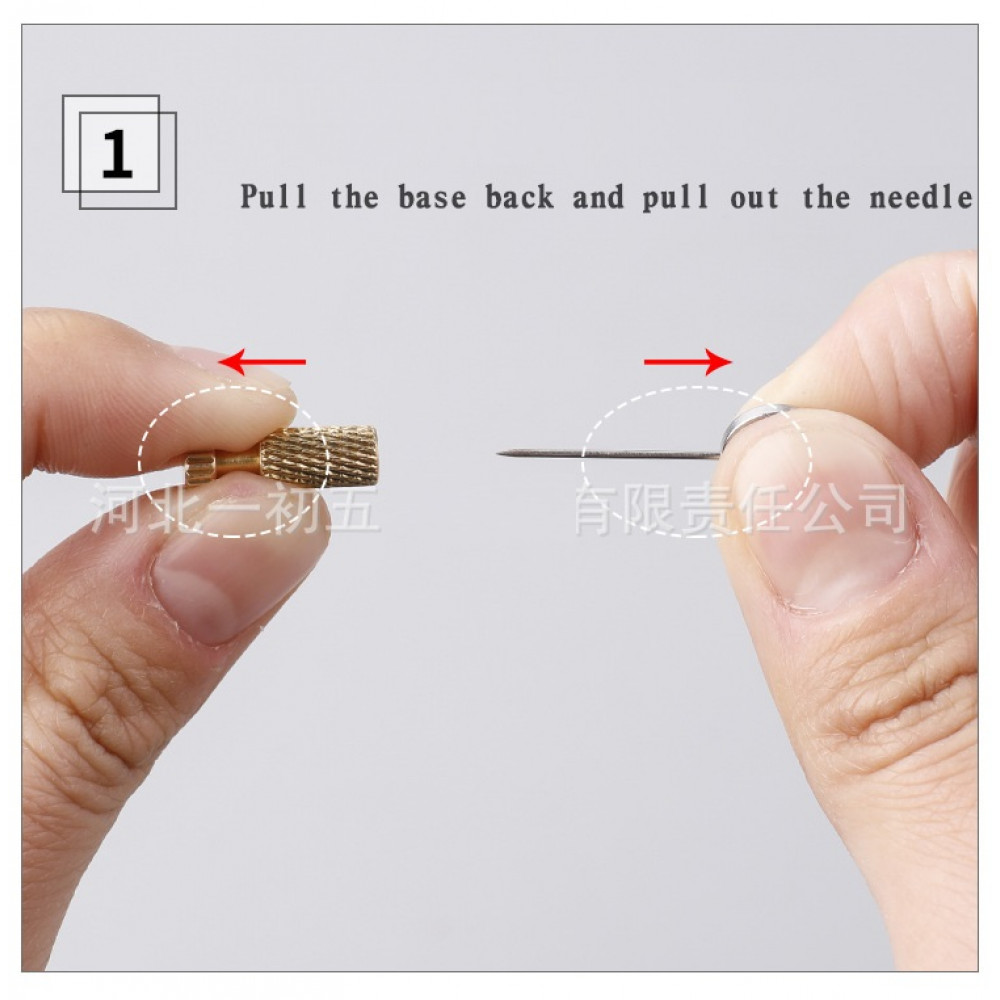 Для вытаскивания иглы после окончания работы нужно одной рукой держать за латунное основание, а второй потянуть (не выкручивать, иначе механизм может сломаться) за колечко иглы.