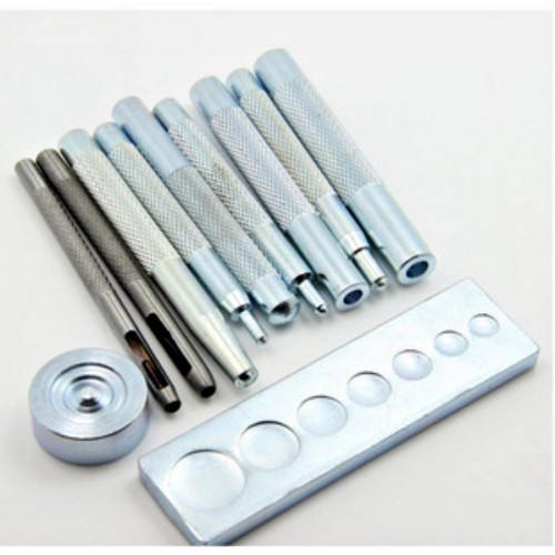 Набор из 11 предметов для ручной установки швейной фурнитуры – металлических кнопок разных тип..