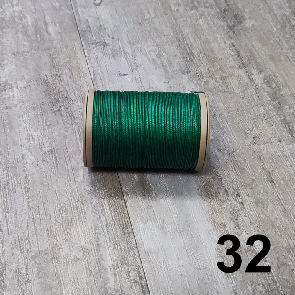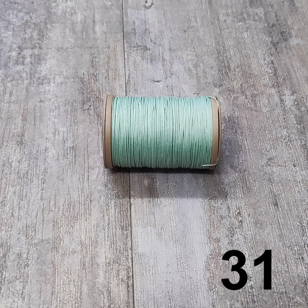 Толщина нити 0,55 мм, длина около 70 м. Нить круглая вощеная.