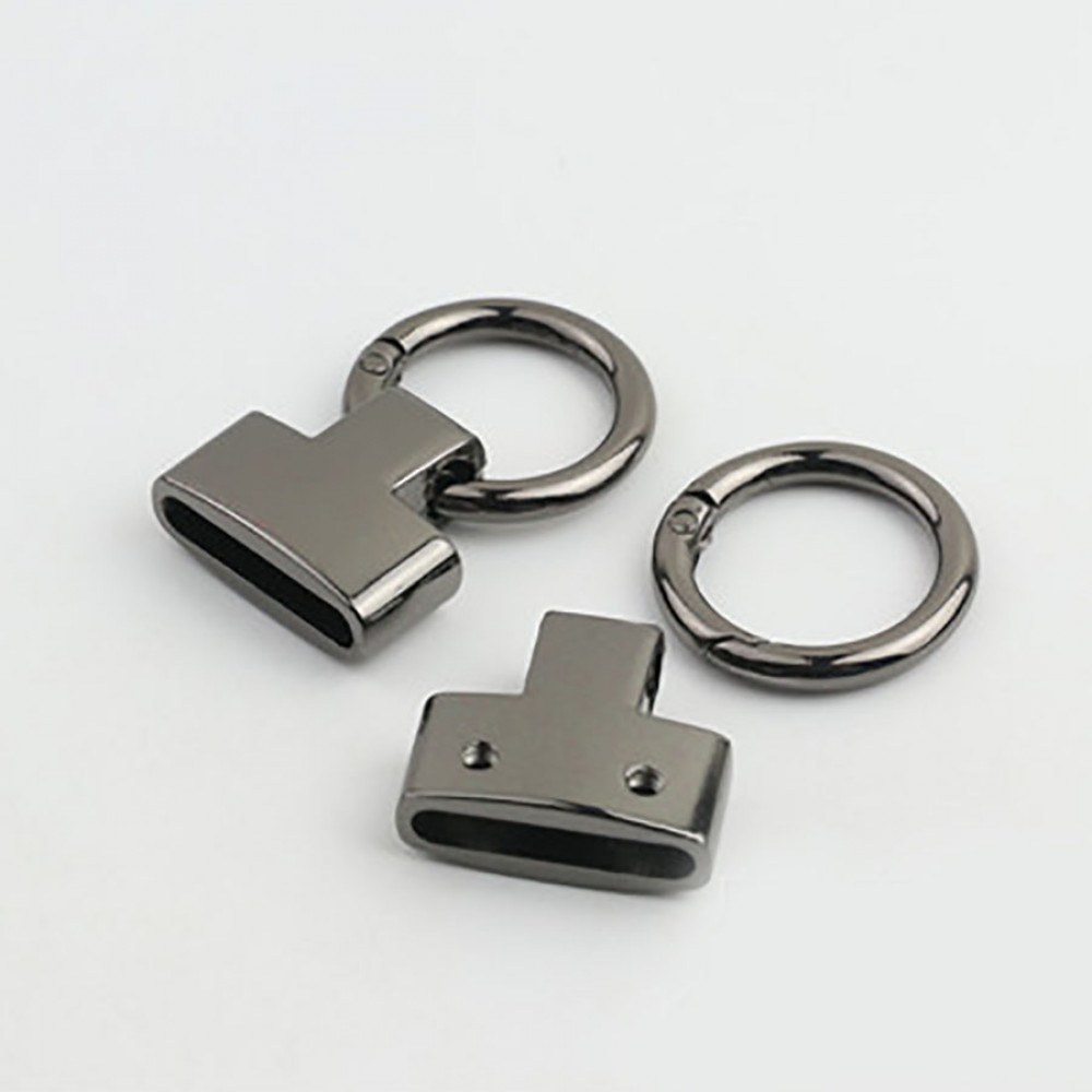 Металлическая декоративная фурнитура для крепления брелока с разъемным кольцом-карабином.