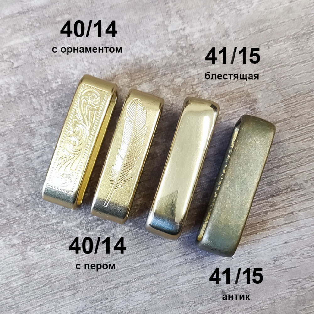 41/15 - внутренний размер 41 мм, высота 15 мм, ширина шлевки 12 мм, блестящая